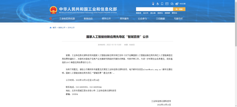 近期,工业和信息化部将遴选的100个国家人工智能创新应用先导区人工智能典型应用场景进行公示。国家人工智能创新应用先导区“智赋百景”涉及10个领域,分别是城市管理、公共安全、交通运输、金融、能源、生态农业、所属领域、文旅教育、医疗健康、制造;涉及8个先导区,分别是北京、成都、广州、杭州、济南-青岛、深圳、上海(浦东新区)、天津(滨海新区)。